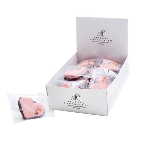 Aalborg Chokolades Marcipanhjerte er lavet af kvalitetschokolade – kendt for sin dybde og kvalitet. Disse lækre marcipanhjerter, som er overtrukket med denne udsøgte chokolade, er nøje formet for at sikre ensartet kvalitet og udseende.