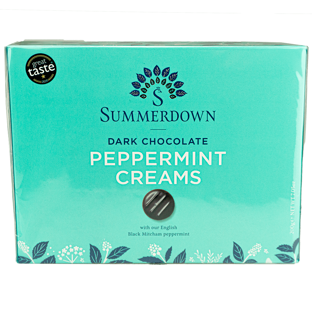 Gaveæske med "Peppermint Creams" overtrukket med mørk Chokolade